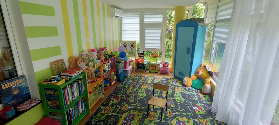 posiada 5 przestronnych sal do zabaw i prac z dziećmi: